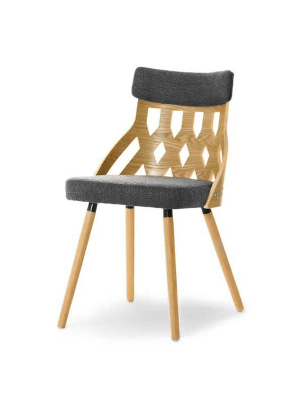 Stolica zanimljivog dizajna izrađena od kvalitetnog drveta i ugodne tkanine unijeti će u Vaš prostor ljepotu i dozu elegancije.