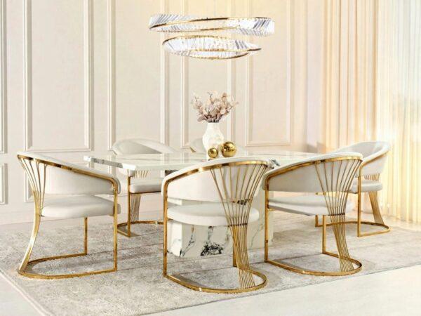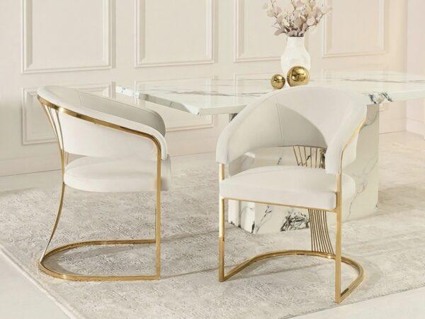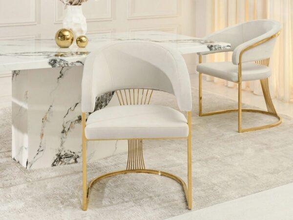 Blagovaonska stolica Diesel III elegantan je i moderan model koji će izgledati savršeno i u dnevnom boravku i u blagovaonici. Kombinacija mekane, svijetle presvlake i svjetlucavog zlatnog postolja unosi dašak luksuza i profinjenosti u svaki interijer. Ergonomski oblik i udoban naslon stolice osiguravaju udobnost tijekom dugih obroka ili razgovora s voljenima.