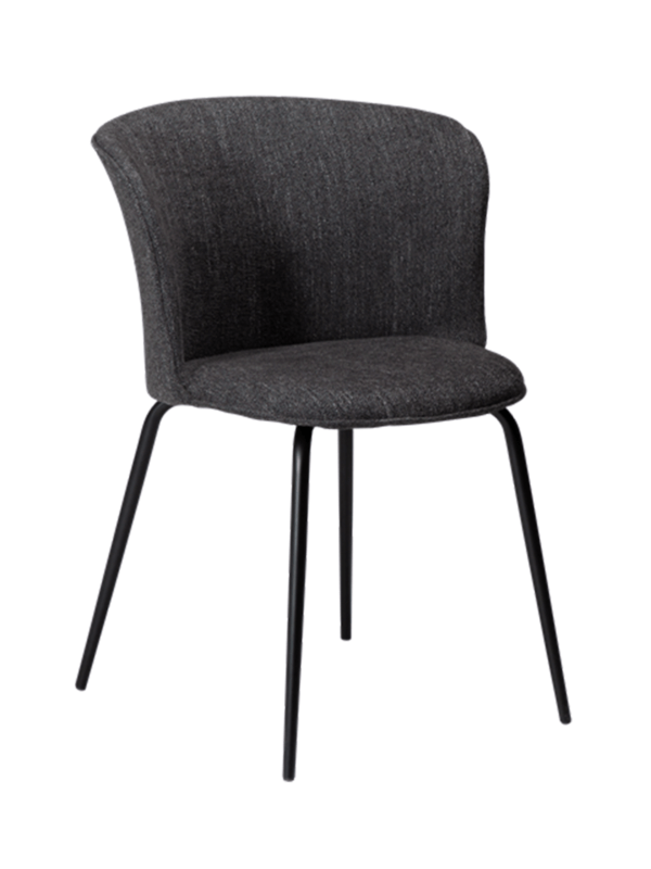 Sjedište ove stolice presvučeno je boucle tkaninom crne boje. Sa svojim ravnim, stožastim, metalnim nogama crne boje, ova stolica predstavlja graciozan i elegantan dizajn.