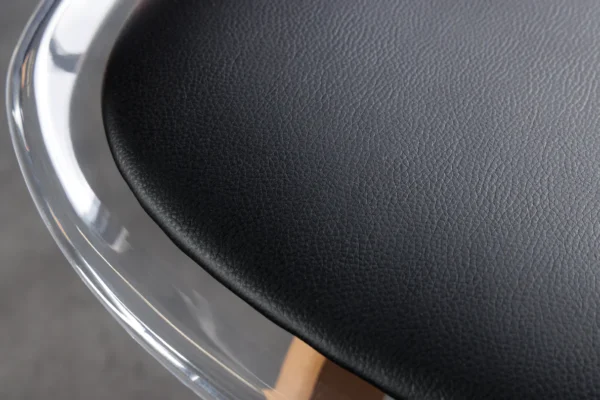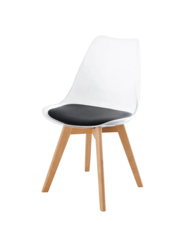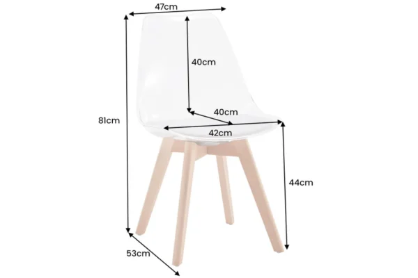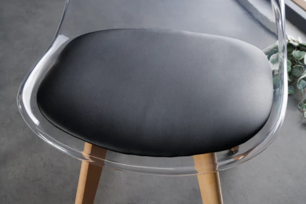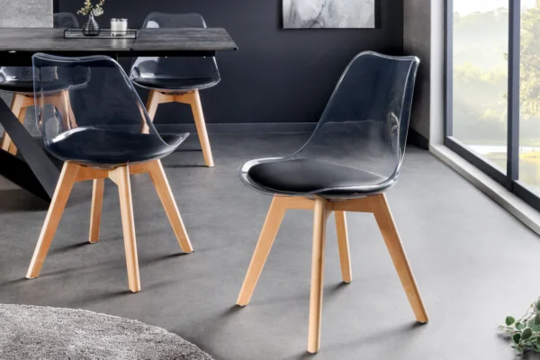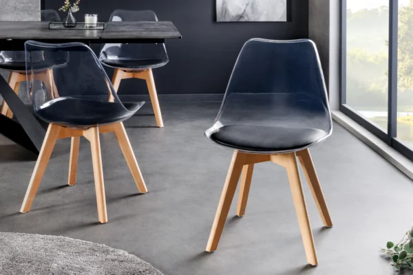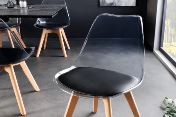 Blagovaonska stolica Freja s prozirnim naslonom i obrubom oko sjedala bit će upečatljiv dodatak vašoj blagovaoni.