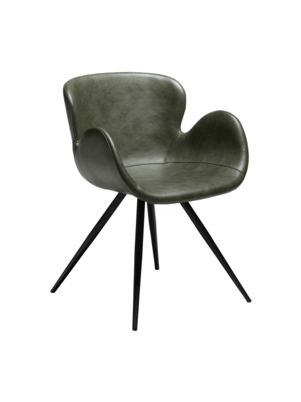 Ova elegantna stolica ističe se svojim mekanim sjedištem i naslon presvučenim eko kožom vintage zelene boje, pozivajući na uživanje u dugim razgovorima za blagovaonskim stolom.