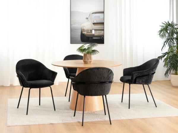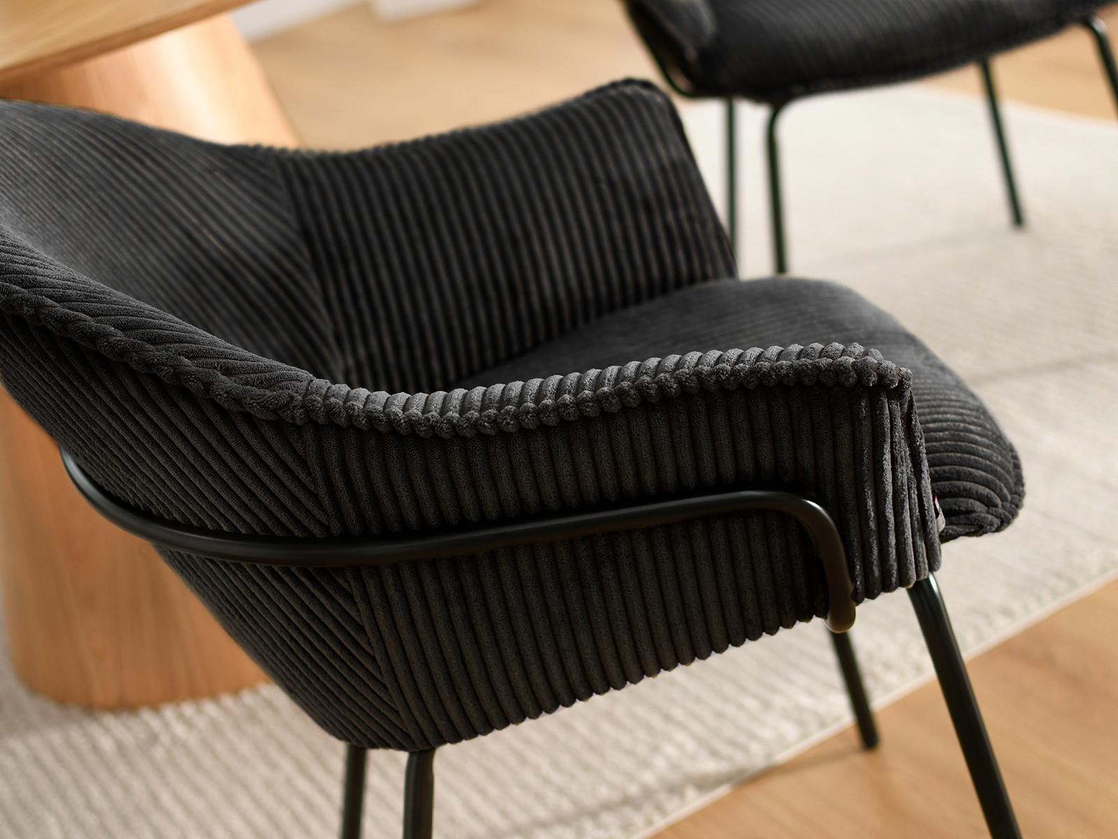 Blagovaonska stolica Gianna nudi elegantan izgled i udobnost zahvaljujući svom mekanom naslonu za leđa i ruke. Čvrsti, crni metalni okvir osigurava stabilnost, a minimalistički dizajn ovog modela naglašava moderan karakter.