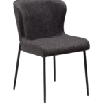 Ova stolica zrači elegancijom s kraljevskim dojmom mekano oblikovanog sjedala izrađenog od boucle tkanine crne boje te vitkih metalnih nogu iste boje.