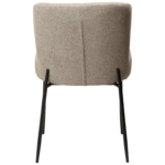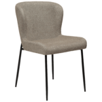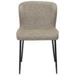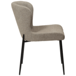 Ova stolica zrači elegancijom s kraljevskim dojmom mekano oblikovanog sjedala izrađenog od boucle tkanine smeđe boje te vitkih metalnih nogu crne boje.