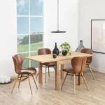 Stolica Gunnar kombinira moderan dizajn s bezvremenskom elegancijom. Organski oblik sjedala presvučenog visokokvalitetnom eko kožom (PU) pruža udobnost i potporu tijekom svakodnevne upotrebe, a kontrastni šavovi dodaju karakter.