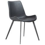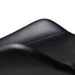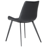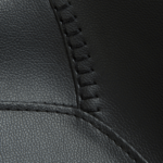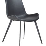 Stolica se ističe prepoznatljivim oblikom sjedala s detaljima poput šavova. Stolica je presvučena eko kožom crne boje te stoji na metalnim nogama crne boje.