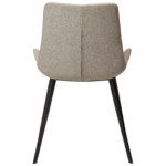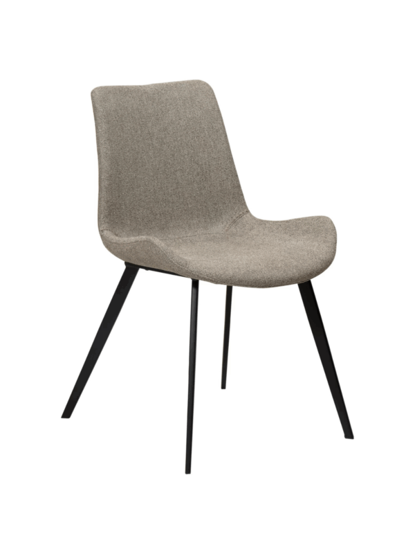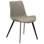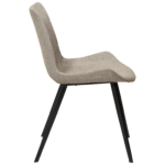 Stolica se ističe prepoznatljivim oblikom sjedala s detaljima poput šavova. Stolica je presvučena boucle tkaninom smeđe boje te stoji na metalnim nogama crne boje.