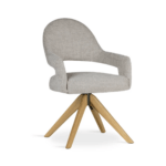 S konturiranim naslonom i drvenom okretnom bazom, blagovaonska stolica Ivona osigurava ergonomsku udobnost i slobodu kretanja. Elegantan izrez na naslonu i pedantna završna obrada dodaju karakter interijeru, a zahvaljujući mogućnosti personalizacije, model možete u potpunosti uskladiti s vašim individualnim stilom interijera, kombinirajući funkcionalnost s estetikom.