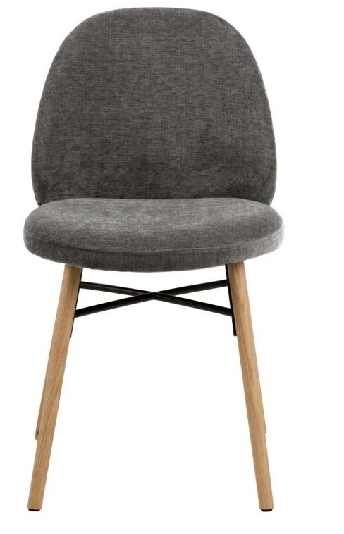 Blagovaonska stolica Johan unijet će topli karakter u vaš dom. Blago zaobljen naslon tapeciran tkaninom s efektom šenila potiče na uspravno držanje, pružajući potporu gornjem dijelu tijela, dok drveno postolje s metalnim detaljem osigurava stabilnost stolice.