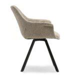 Bež stolica od buclea s naslonima za ruke jedinstven je komad namještaja koji savršeno spaja funkcionalnost i bezvremenski dizajn. Osim svoje udobne forme, ova stolica je i jedinstveni ukras za svaki interijer. Stolica s naslonima za ruke praktičan je komad namještaja koji se može koristiti u mnogim prostorijama.