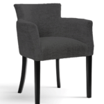 Čvrsti okvir ove stolice temeljen na nogama od bukovog drva, dostupan je u čak 7 boja po izboru. Za visoku udobnost sjedenja zaslužni su mekani jastuci, kako na sjedalu tako i na naslonu. Jednostavni šavovi na naslonu i visoki, oblikovani nasloni za ruke dodaju šarm.