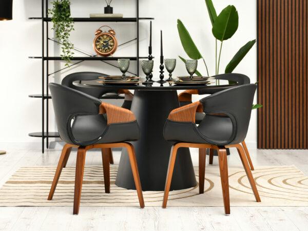 Boja: Crna; Materijal: Drvo, Eko koža;
