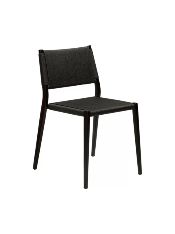Metalni okvir crne boje ukrašen je ručno pletenim 3-slojnim vlaknom crne boje, pružajući stolici jednostavan, linearan izgled koji je podiže na višu razinu.