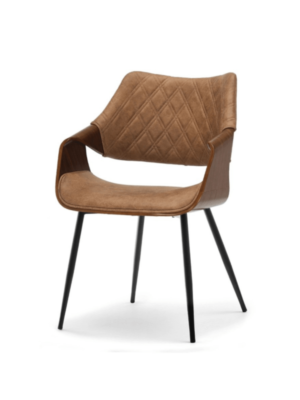 Blagovaonska stolica Lord izrađena je od metala i visokokvalitetnog furnira boje oraha koji joj daje prirodnu toplinu. Ovaj model presvučen je vintage tkaninom koja imitira kožu, ugodna je i mekana na dodir, dok elegantni šavovi i suptilno svjetlucave boje s efektom istrošenosti daju elegantan izgled.