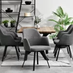 Jednostavna, ali drugačija – okretna stolica Luis oduševit će Vas svojim dizajnom. Osnovni materijal je izdržljiva tkanina bezvremenske strukture. Ima svojstva blokiranja vode, što otežava upijanje prolivenih tekućina. Također je otporan na plamen i ne blijedi kada je izložen svjetlu. Čelično postolje, u kombinaciji s navedenom tkaninom, svakom interijeru staviti će točku na i.