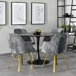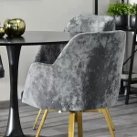 Jednostavna, ali drugačija – okretna stolica Luis oduševit će Vas svojim dizajnom. Za presvlaku sjedala korištena je velur tkanina iz kolekcije EUREKA. Ovaj materijal se odlikuje niskom apsorpcijom tekućina, otpornošću na plamen kao i na izvlačenje niti (otporan na kućne ljubimce). Čelično postolje, u kombinaciji s navedenom tkaninom, svakom interijeru staviti će točku na i.