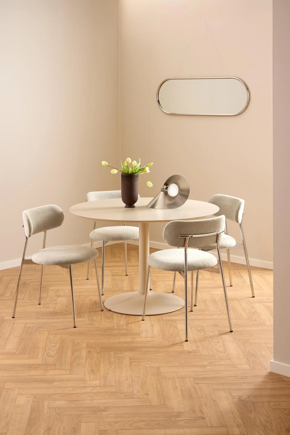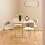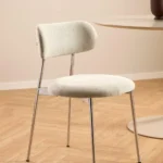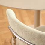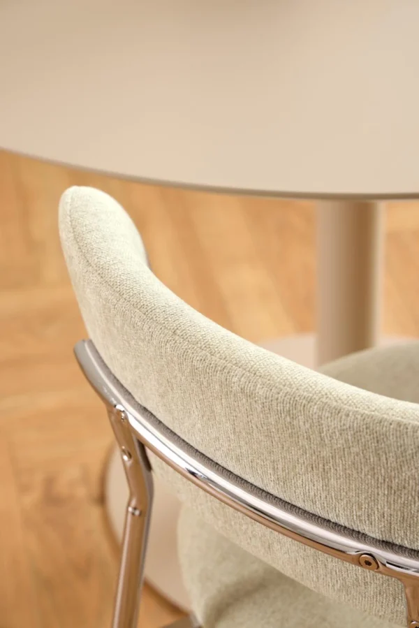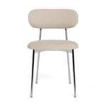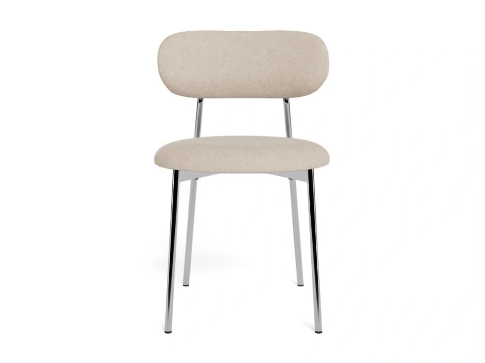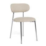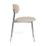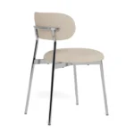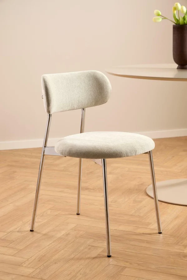 Blagovaonska stolica Lyrica utjelovljuje futurističku estetiku, unoseći element minimalizma u blagovaonicu. Cjevasti okvir i noge izrađeni su od sjajnog kromiranog čelika, a kako bi se naglasila mekša strana dizajna, zaobljeno sjedalo prekriveno je tkaninom sličnom šenilu.