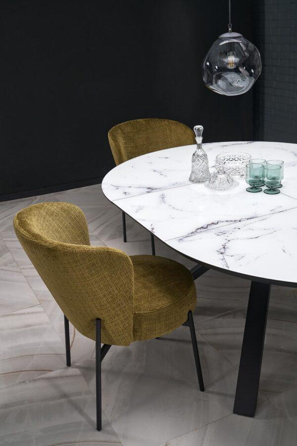Noelle stolica odiše suvremenom elegancijom i profinjenim, skulpturalnim dizajnom koji unosi toplinu i stil u svaki interijer. Zaobljene linije, udobno tapecirano sjedište i nježno oblikovano naslonjalo stvaraju skladan spoj estetike i udobnosti, dok pažljivo odabrani materijali dodatno naglašavaju njezin sofisticiran karakter. Idealan je izbor za blagovaonicu ili elegantno uređen poslovni prostor.