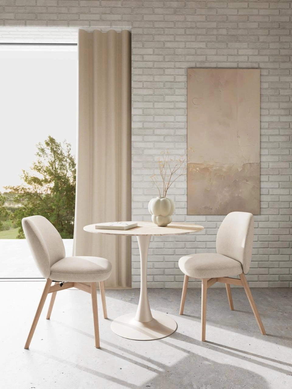 Blagovaonska stolica Nour savršen je dodatak blagovaonama u scandi stilu. S postoljem od punog drva hrasta i mekom teksturiranom tkaninom, stolica zadovoljava i praktične i estetske zahtjeve.