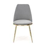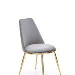 Blagovaonska stolica Nuage stolica je tapecirana tkaninom krupnoga tkanja s naslonom neobičnoga dizajna i elegantnim metalnim nogama.