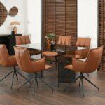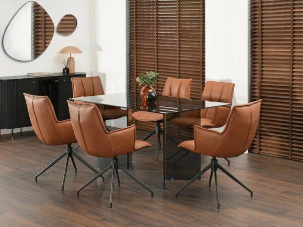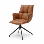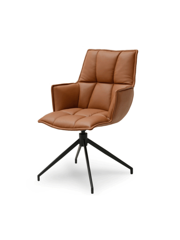 Blagovaonska stolica Nubia dizajnerski je komad namještaja savršen za svakodnevnu upotrebu. Izrađena od visokokvalitetne prave kože i ukrašena elegantnim šavovima, kombinira visoku udobnost s modernim oblikom. Također ima okretno sjedalo s praktičnom funkcijom automatskog vraćanja, što značajno poboljšava svakodnevnu udobnost. Okretni mehanizam omogućuje vam slobodno okretanje dok sjedite, a kada ustanete, stolica se vraća u prvobitni položaj.