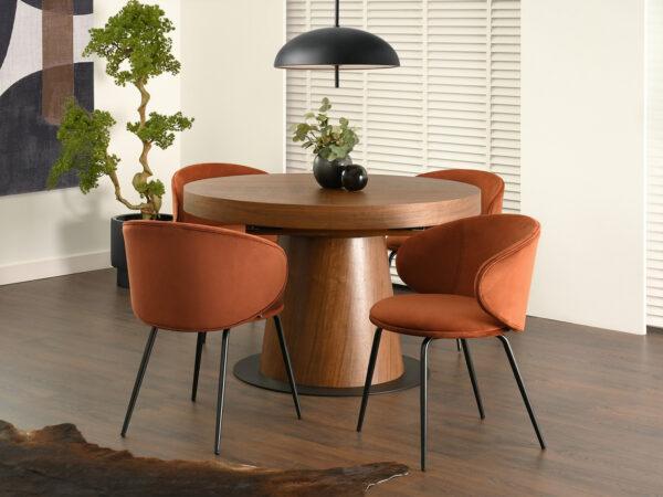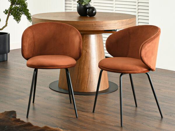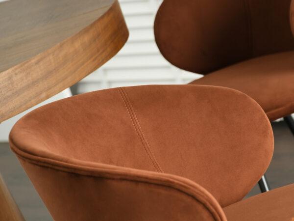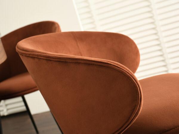 Mekani, baršunasti materijal na stolici Odelia pruža nenadmašnu udobnost sjedenja, a elegantna završna obrada će prostoru dodati dašak luksuza. Metalna konstrukcija daje čvrstoću i stabilnost stolici, dok je baršunastu presvlaku lako održavati čistom. Svojim bezvremenskim dizajnom uklapaju se u svaki interijer, od klasičnog do modernog.