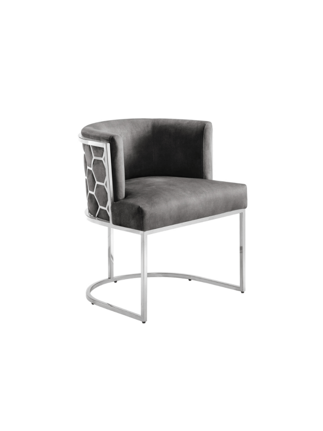 Blagovaonska stolica Odissa naglašene pravilne konstrukcije u crnome metalu idealna je za sve ljubitelje geometrijskoga namještaja, pa i secesije. Stilski obilježena stolica dolazi u pet nijansi tapeciranoga naslona i sjedišta.