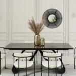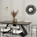Blagovaonska stolica Odissa naglašene pravilne konstrukcije u crnome metalu idealna je za sve ljubitelje geometrijskoga namještaja, pa i secesije. Stilski obilježena stolica dolazi u više nijansi tapeciranoga naslona i sjedišta.