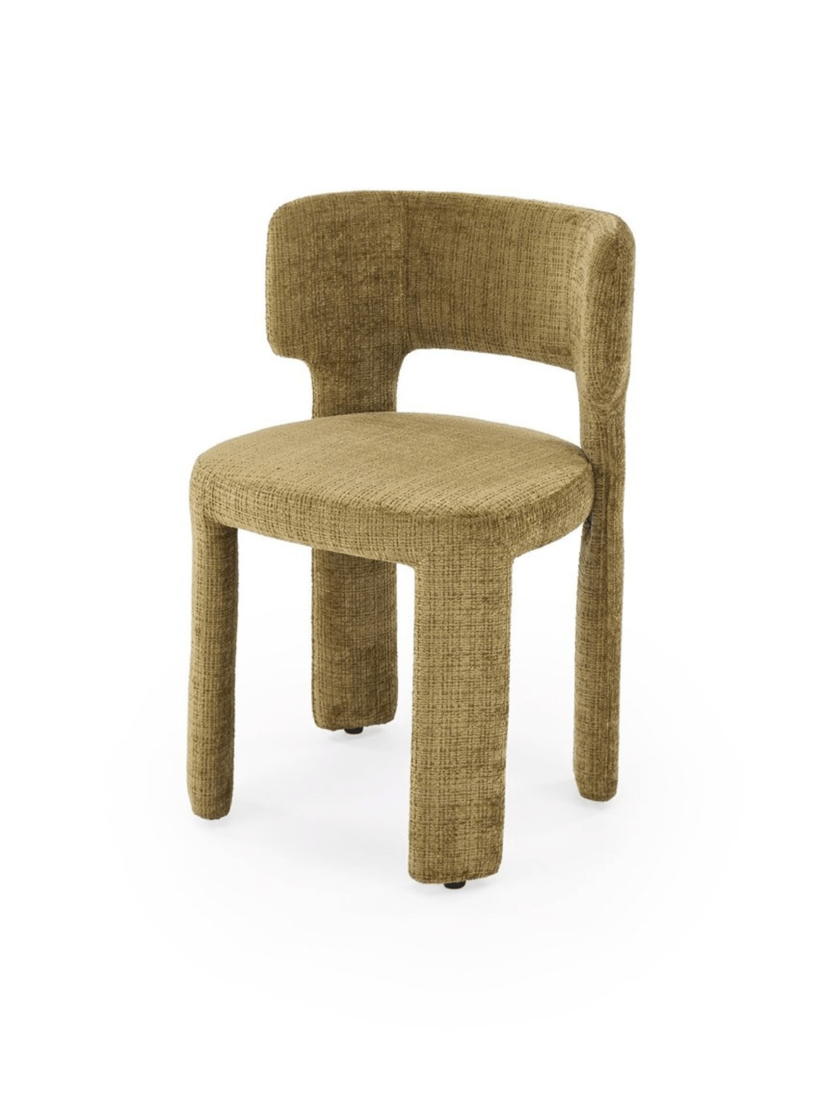 Ravela stolica odiše suvremenom elegancijom i profinjenim dizajnom koji se lako uklapa u različite interijere. Nježne zaobljene linije, udobno tapecirano sjedište i dekorativna tkanina u svijetloj maslinasto zelenoj nijansi stvaraju skladan spoj estetike i funkcionalnosti, idealan za blagovaonicu, dnevni boravak ili elegantan poslovni prostor.