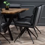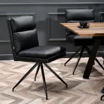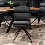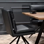 Pomalo nekonvencionalna cjelina modela Rolph formirana je od prošivenih jastuka zasebno tapeciranih eko kožom te četverokrakog podnožja. Lakoća čišćenja ove vrste materijala bit će praktično rješenje u svakoj blagovaonici, a dodatne mogućnosti rotacijskoga mehanizma te nedostatka rukonaslona olakšat će kretanje te pospremanje stolice ispod ploče stola. Plastična stopa koja završava metalnu nogu štiti pod od grebanja.