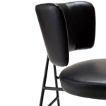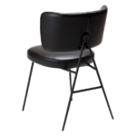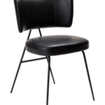 Stolica obiluje prekrasnim detaljima, od stražnjih metalnih nogu koje formiraju slovo A do dekorativnog vertikalnog šava unutar naslona. Presvučena je eko kožom vintage crne boje.