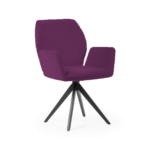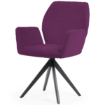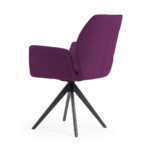 Udobna stolica s crnim, čvrstim metalnim nogama ima široko sjedalo prekriveno udobnim naslonima za ruke koji rasterećuju vaše ruke tijekom obroka ili rada. Okretna noga povećava udobnost korištenja i može razveseliti i mlađe i starije ukućane.