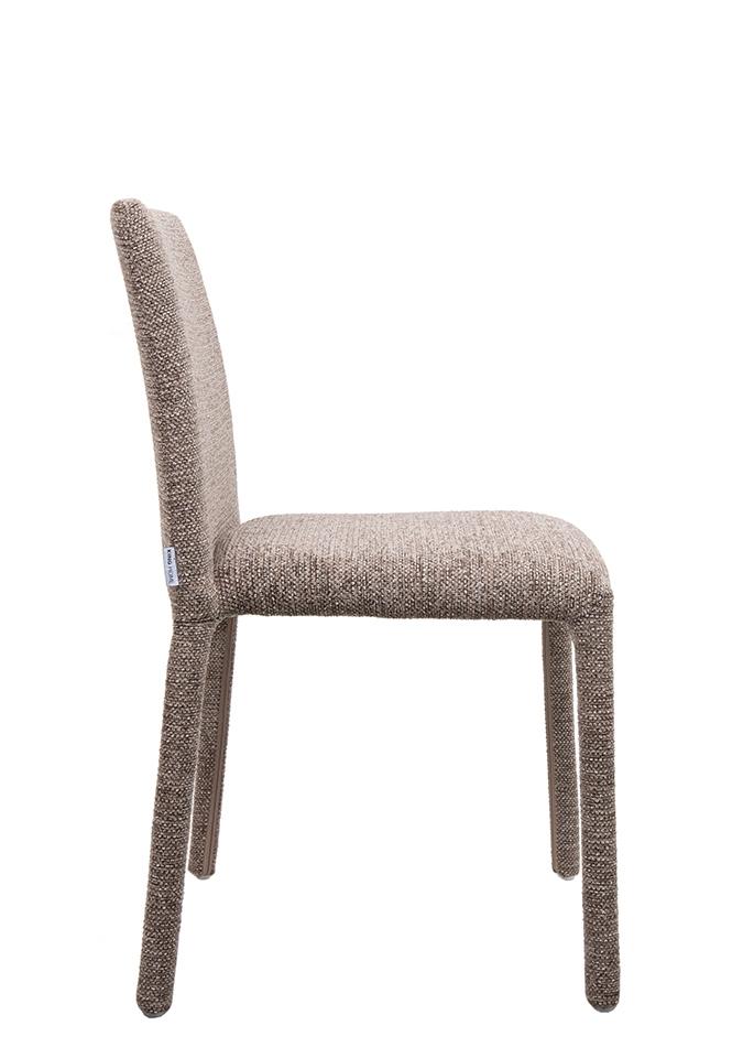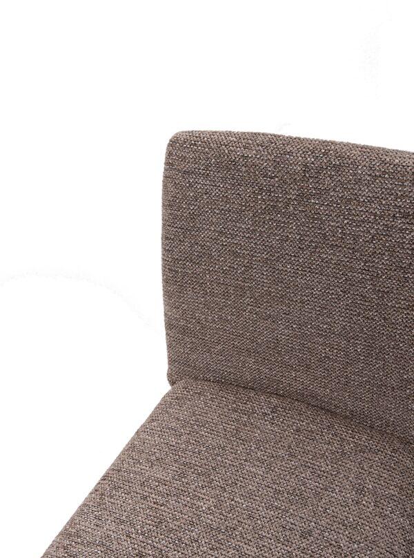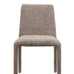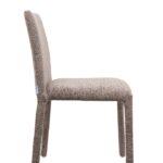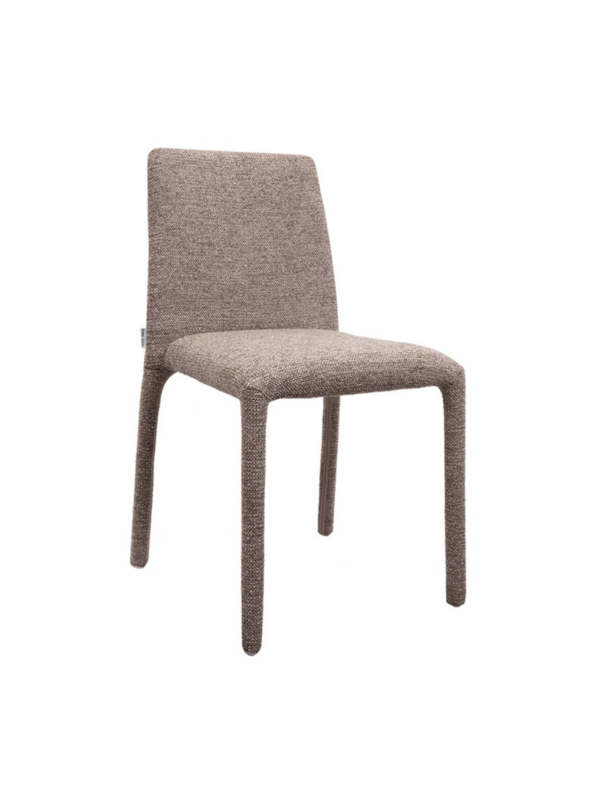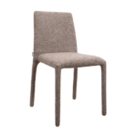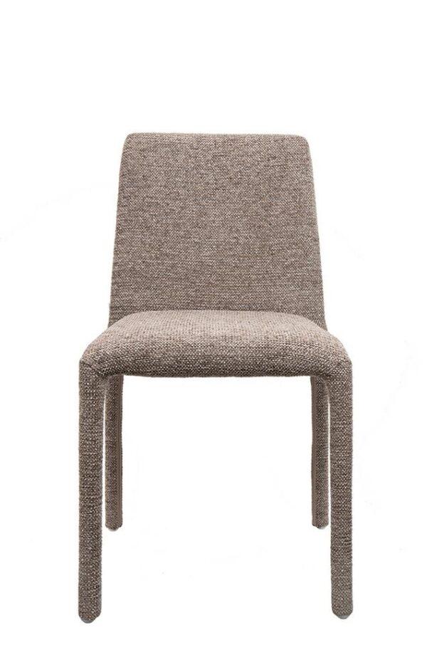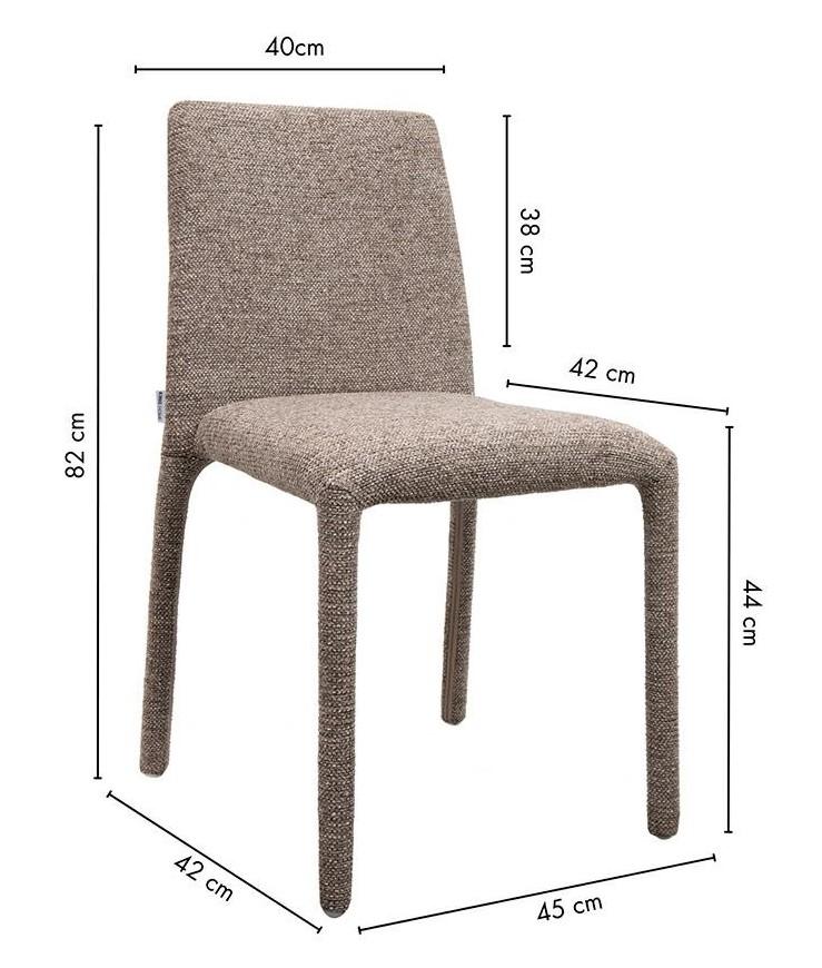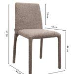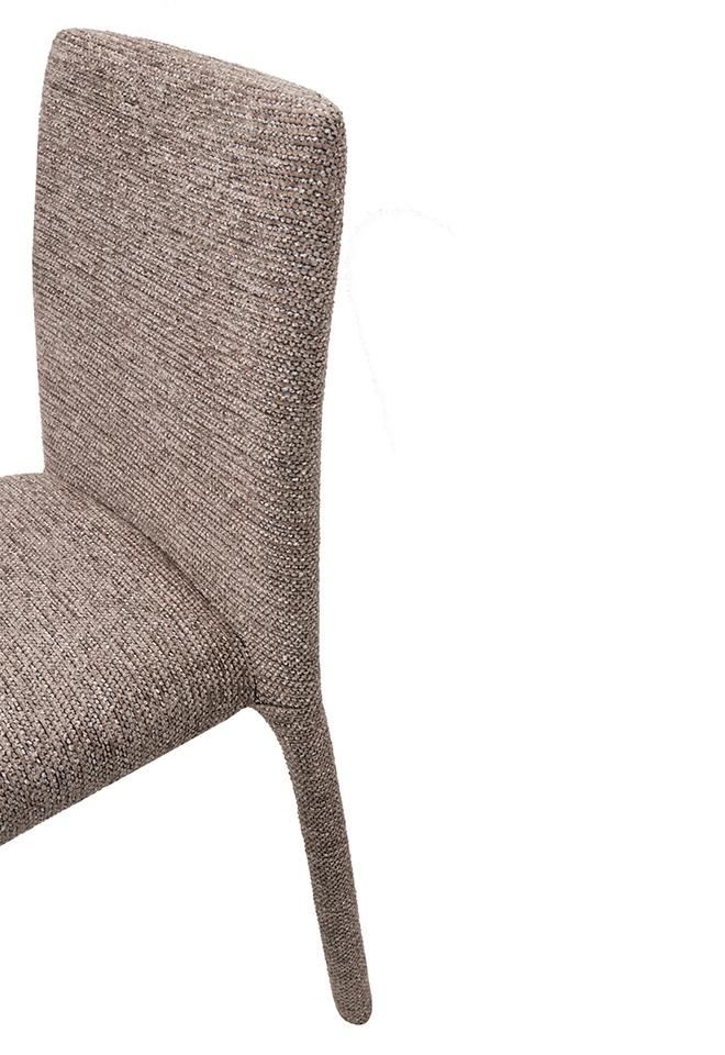 Blagovaonska stolica Rua elegantan je i vizualno lagan element dizajna interijera koji uljepšava svaki prostor. Smeđa presvlaka izrađena od 100% poliestera ima prepoznatljivu taktilnu teksturu, pružajući ugodan osjećaj. Vitki oblik i jednostavne proporcije daju stolici moderan i skladni izgled, dok konstrukcija od metalnog okvira, drva i šperploče osigurava izdržljivost i stabilnost tijekom svakodnevne upotrebe.