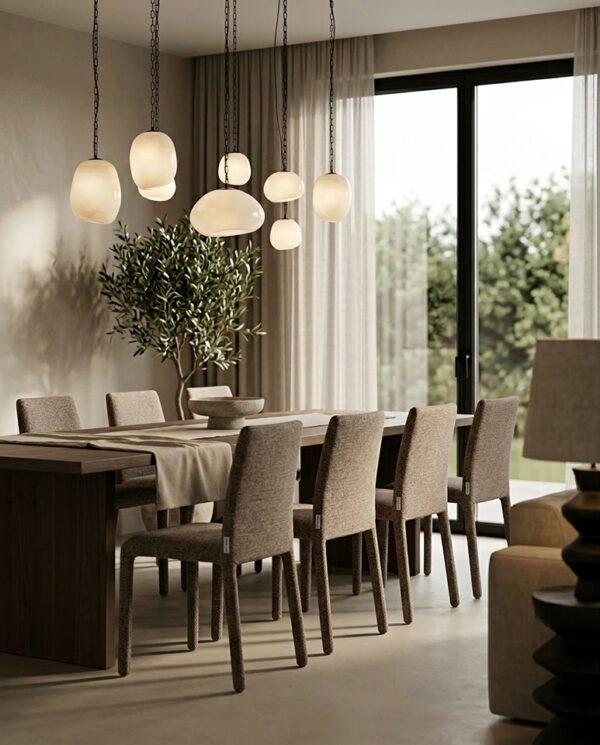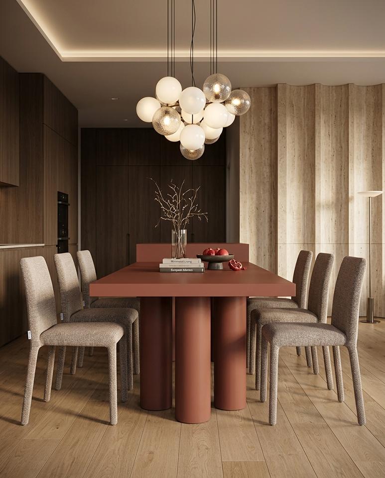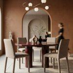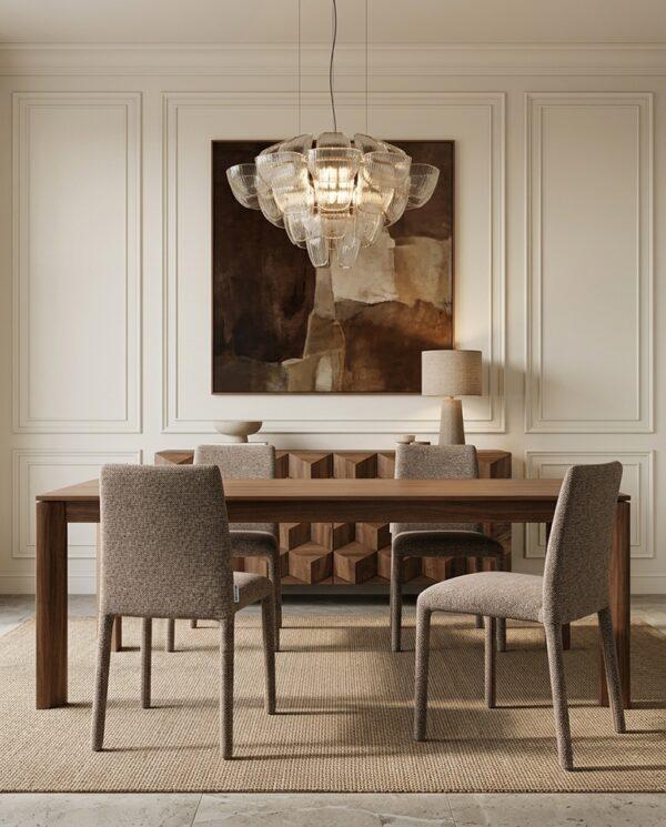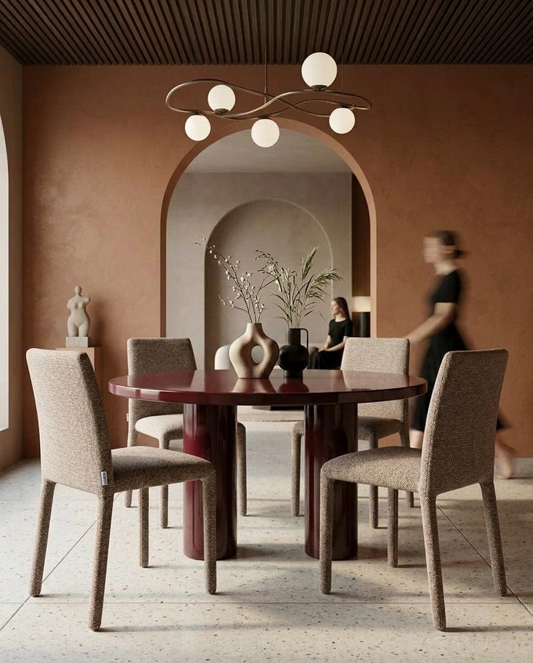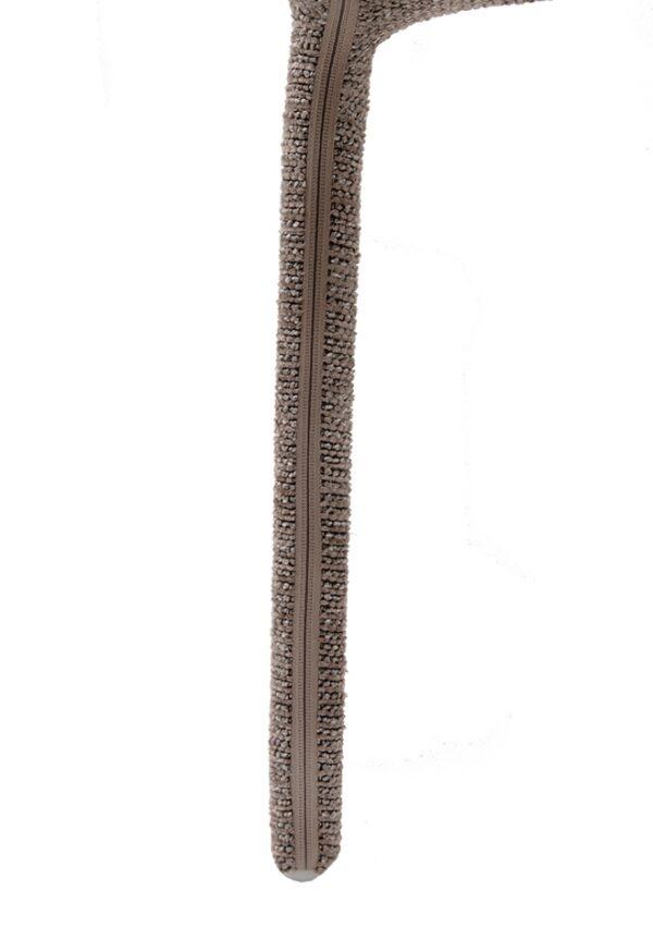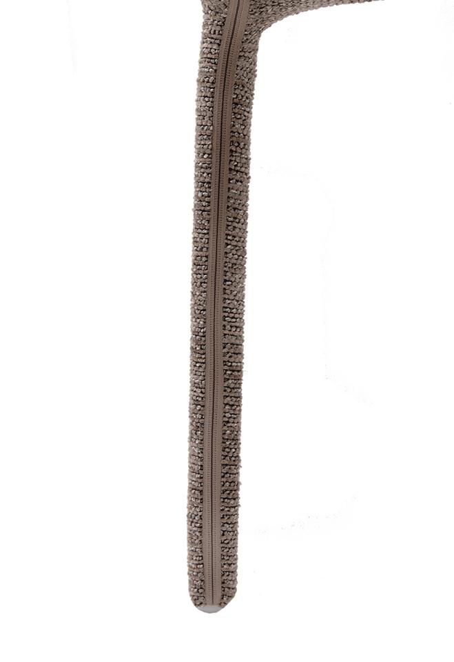 Blagovaonska stolica Rua elegantan je i vizualno lagan element dizajna interijera koji uljepšava svaki prostor. Smeđa presvlaka izrađena od 100% poliestera ima prepoznatljivu taktilnu teksturu, pružajući ugodan osjećaj. Vitki oblik i jednostavne proporcije daju stolici moderan i skladni izgled, dok konstrukcija od metalnog okvira, drva i šperploče osigurava izdržljivost i stabilnost tijekom svakodnevne upotrebe.