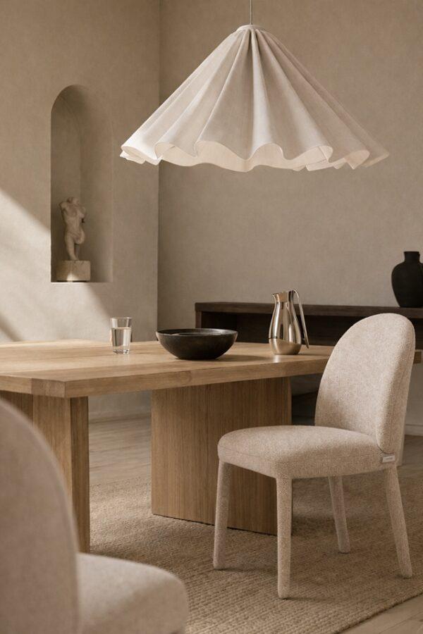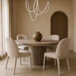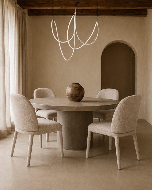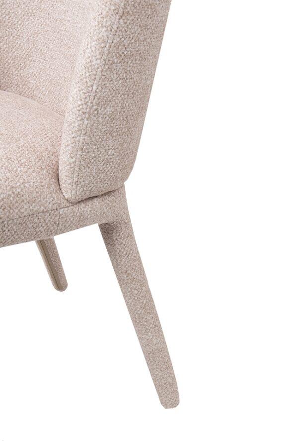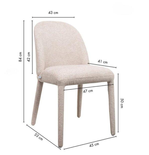 Blagovaonska stolica Samvel elegantna je kombinacija modernog oblika i udobne završne obrade. Presvlaka od 100% poliestera ima meku, ugodnu na dodir strukturu koja svakom interijeru dodaje topao karakter. Zaobljeni naslon i ergonomski oblik osiguravaju udobnost tijekom svakodnevne upotrebe, a čvrsta konstrukcija, temeljena na metalnom okviru te ojačanom drvom i šperpločom, jamči izdržljivost i stabilnost.