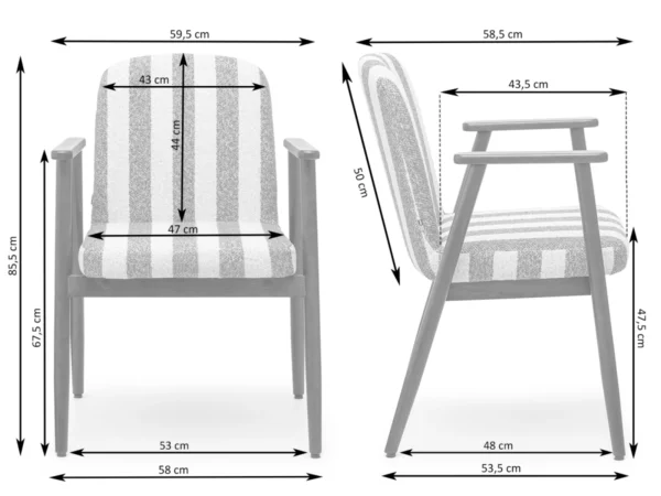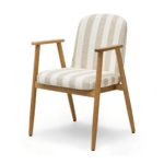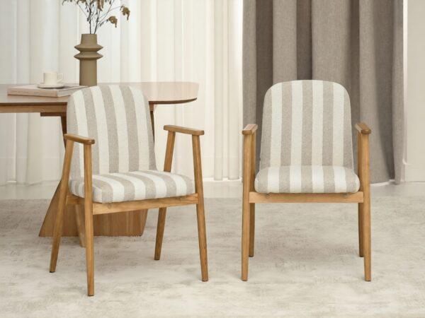 Blagovaonska stolica Santorini savršen je izbor za ljubitelje suvremenih i modernih interijera. Njena prugasta presvlaka daje joj lagan i elegantan osjećaj, dok drvena baza naglašava topli karakter modela. Savršeno se slaže s drvenim stolovima i dodacima u neutralnim tonovima, stvarajući ugodnu atmosferu.