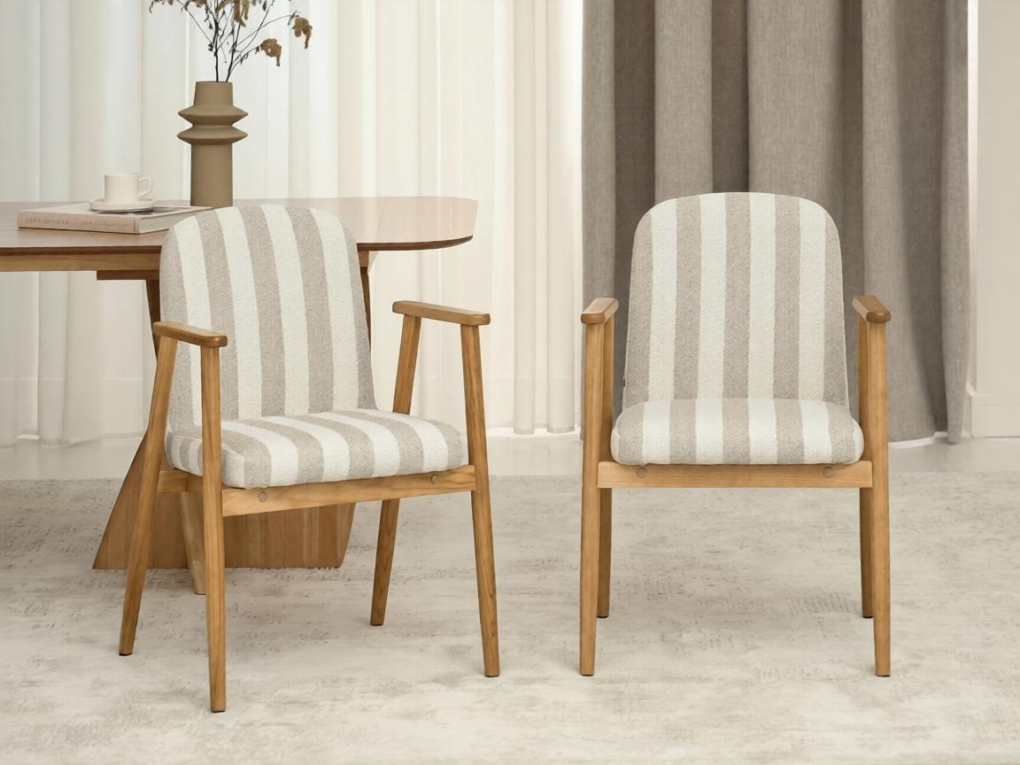 Blagovaonska stolica Santorini savršen je izbor za ljubitelje suvremenih i modernih interijera. Njena prugasta presvlaka daje joj lagan i elegantan osjećaj, dok drvena baza naglašava topli karakter modela. Savršeno se slaže s drvenim stolovima i dodacima u neutralnim tonovima, stvarajući ugodnu atmosferu.