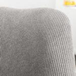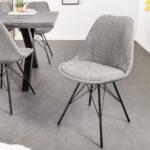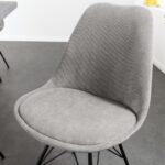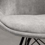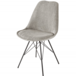 Ovaj stolac ima sivu presvlaku od baršuna s crnim, praškasto premazanim metalnim okvirom. Sjedište je prostrano, a naslon za leđa udoban, pružajući podršku do 120 kg težine.