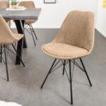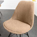 Ovaj stolac ima smeđu presvlaku od baršuna s crnim, praškasto premazanim metalnim okvirom. Sjedište je prostrano, a naslon za leđa udoban, pružajući podršku do 120 kg težine.