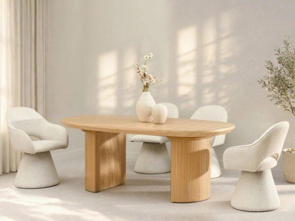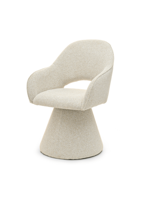 Blagovaonska stolica Solein II izrađena je od visokokvalitetne pjene za presvlačenje, dok je baza kombinacija drva i tkanine, osiguravajući trajnost. Zahvaljujući korištenju pažljivih tehnika proizvodnje, stolicu karakterizira izdržljivost i dugovječnost – svaki detalj, od otvorenog naslona do zaštitnih nožica, dizajniran je imajući na umu udobnost i sigurnost korisnika.