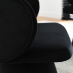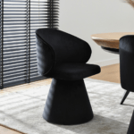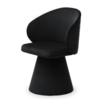 Blagovaonska stolica Solein savršena je kombinacija modernosti i klasične elegancije. Stožasta noga, presvučena istom crnom baršunastom tkaninom kao i sjedalo, stvara skladan izgled. Zahvaljujući funkciji okretanja, stolica jamči udobnost.