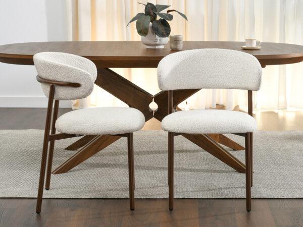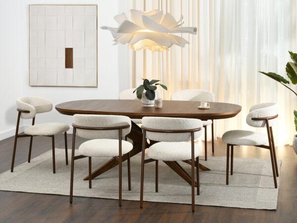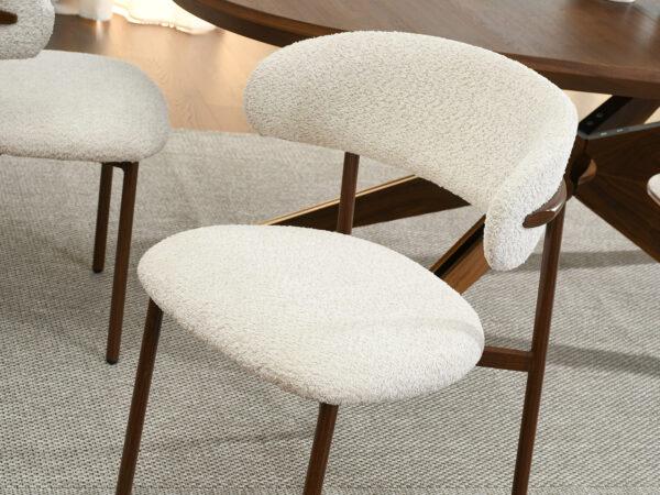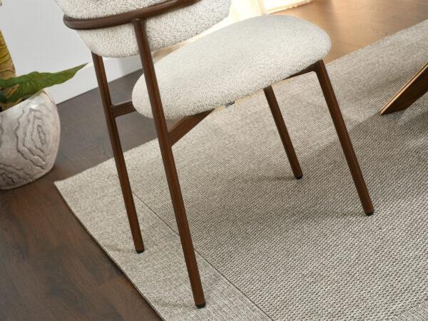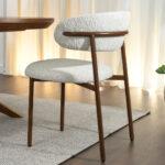 Blagovaonska stolica Sule od bouclé-a savršeno će se uklopiti u interijere uređene u japanskom stilu, gdje su jednostavnost, prirodni materijali i prigušene boje važni. Njena ugodna tekstura i nježna nijansa također će se dobro uklopiti u aranžmane skandinavskog stila, unoseći toplinu i harmoniju.