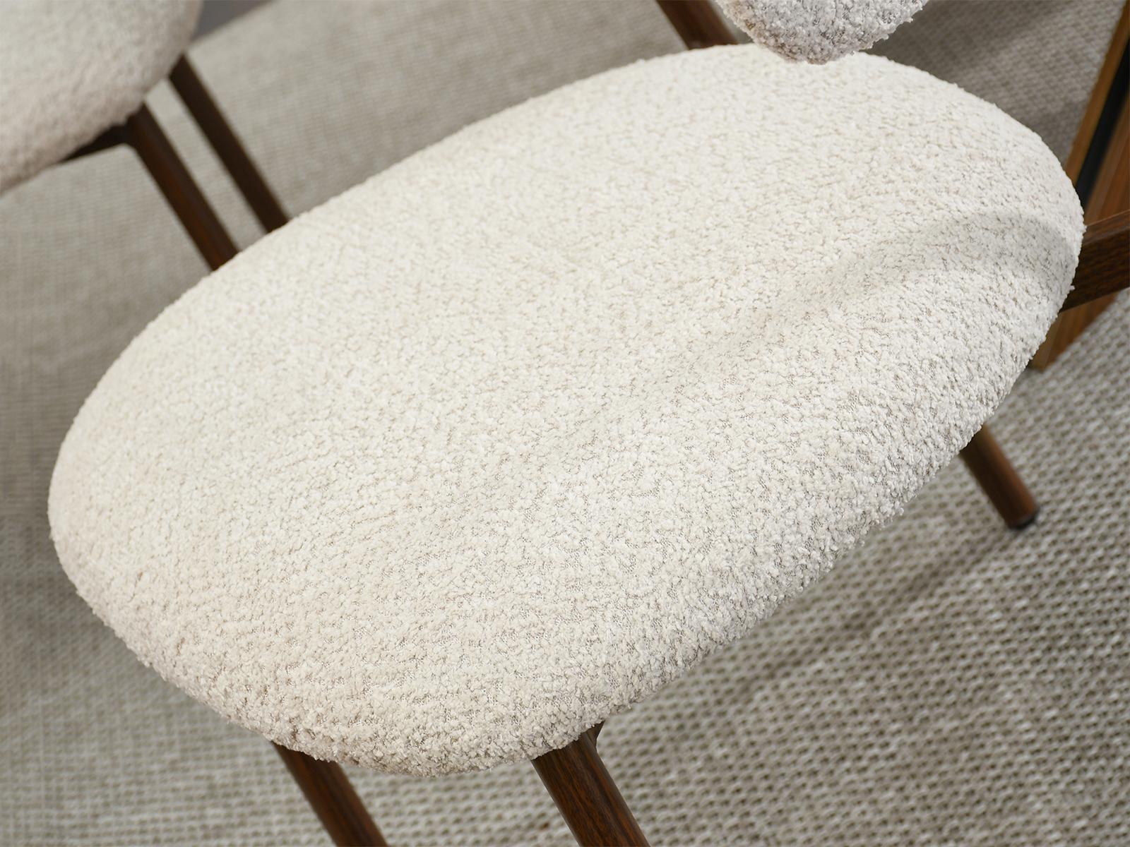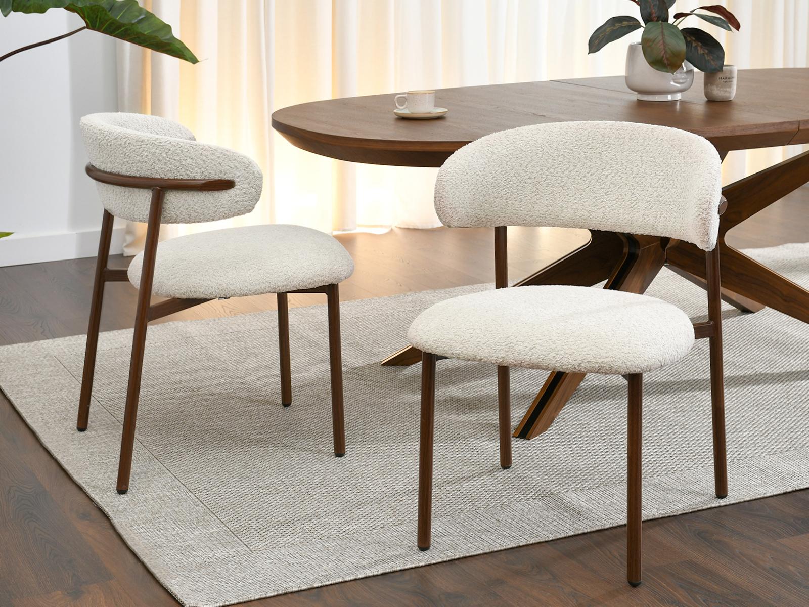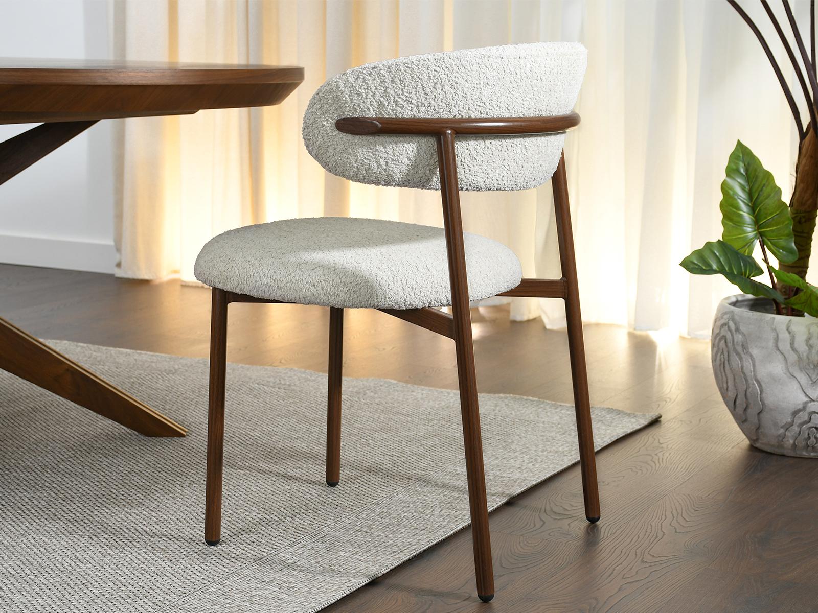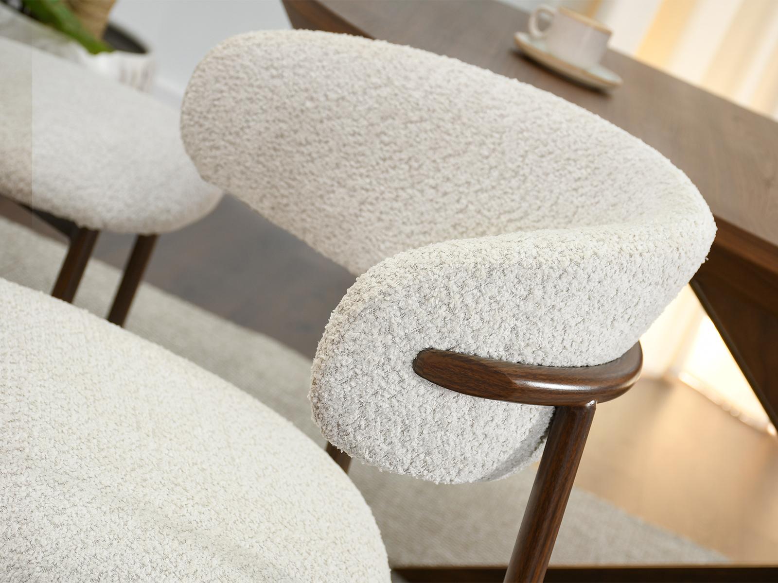 Blagovaonska stolica Sule od bouclé-a savršeno će se uklopiti u interijere uređene u japanskom stilu, gdje su jednostavnost, prirodni materijali i prigušene boje važni. Njena ugodna tekstura i nježna nijansa također će se dobro uklopiti u aranžmane skandinavskog stila, unoseći toplinu i harmoniju.