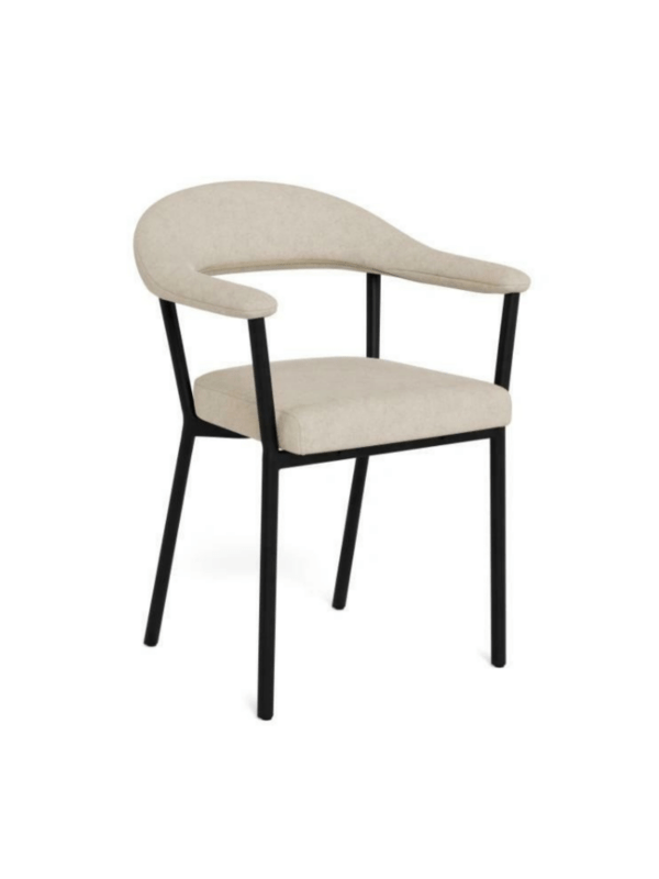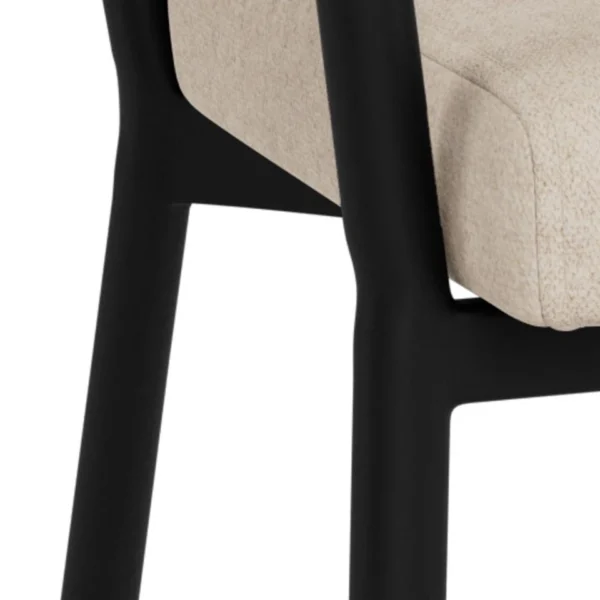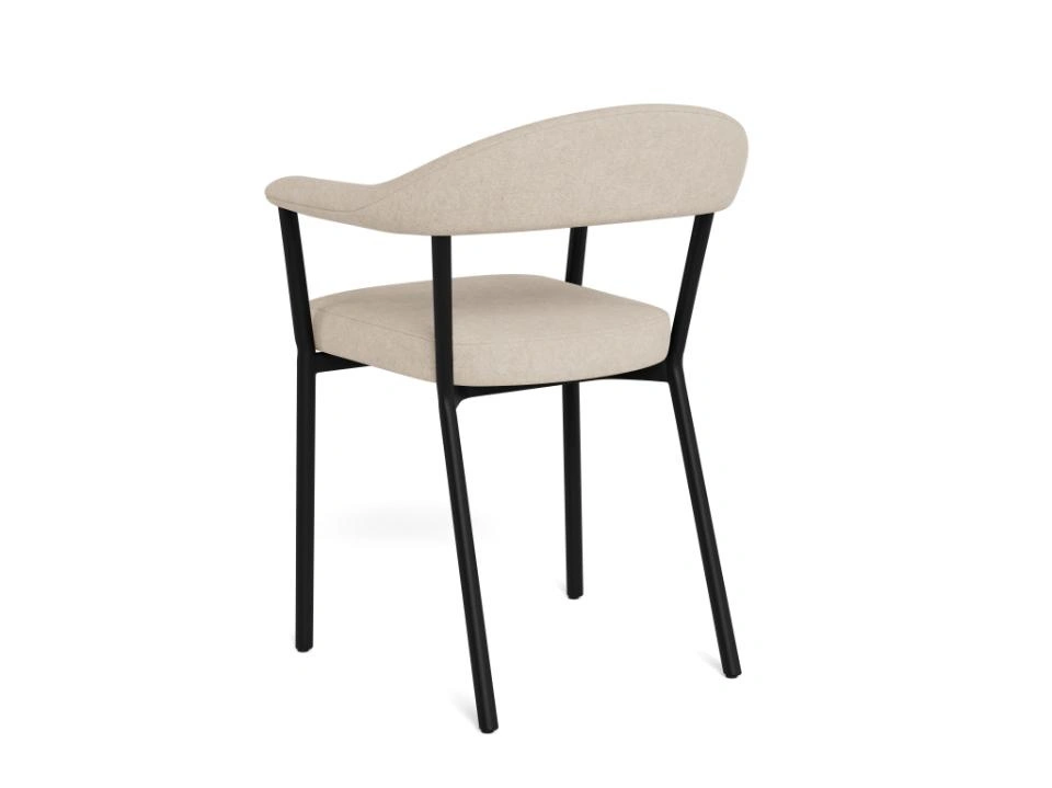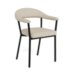 Blagovaonska stolica Tavora pruža visoku potporu i udobnost sa svojim zakrivljenim naslonom, dok je debela teksturirana tkanina topla i privlačna. Elegantne crne noge osiguravaju da će ova stolica odgovarati svakom stilu uređenja.