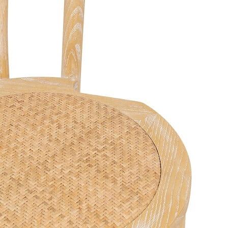 Autentična i prirodna, blagovaonska stolica Toluka izrađena je od brijestovog drva, nježno izbijeljenog za zapanjujući izgled. Udobno sjedalo od tkanog ratana obloženo je pjenom. Ova stolica reinterpretira klasični bistro stil s boho prizvukom i savršena je za stvaranje tople i ugodne atmosfere oko blagovaonskog stola.