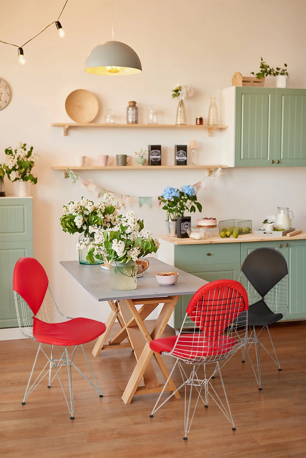 Glavna i najupečatljivija značajka blagovaonske stolice Wire je njezina kromirana žičana konstrukcija koja, zahvaljujući ergonomskom obliku i visokoj gustoći tkanja pruža izvrsnu udobnost korisniku. Količina i kvaliteta rada uložena u njezinu proizvodnju dokazuje činjenica da sjedalo ima preko 320 točkastih zavara. Za dodatnu udobnost, stolica je završena jastucima koji se lako skidaju.