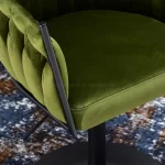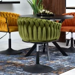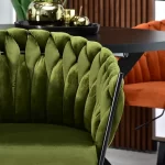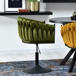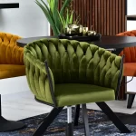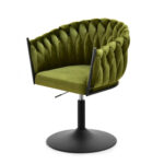 Okretna Zoe Ring uspješno će se uklopiti u interijere klubova, kafića i blagovaonica, a lijepo će izgledati i kao toaletni stolac ili stolac za garderobu. Kako bi se naglasio jedinstveni oblik školjke, fotelja je presvučena izdžljivim velurom vrste Royal Velvet u prepoznatljivoj, zelenoj boji. Elegantno tijelo sjedala postavljeno je na nogu s okruglom stopom izrađenom od čelika premazanog prahom u crnoj boji. Stopa na svojoj donjoj strani ima plastični dodatak koji sprječava oštećivanje podloge, a montira se jednostavno – pomoću četiri vijka. Dubina sjedala, nasloni za ruke, mogućnost okretanja i regulacije visine omogućuju ugodno korištenje. Ručna izrada pletenica oko crnoga okvira oduševljava preciznošću tkanja te dodaje jedinstven karakter i ljepotu stolice gledane sa svih strana.