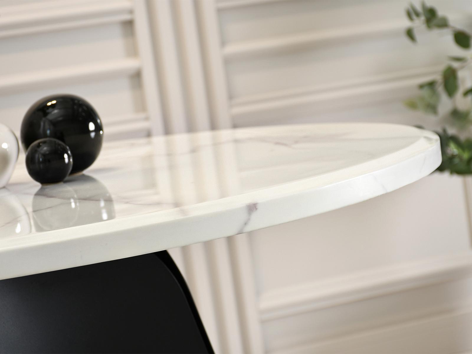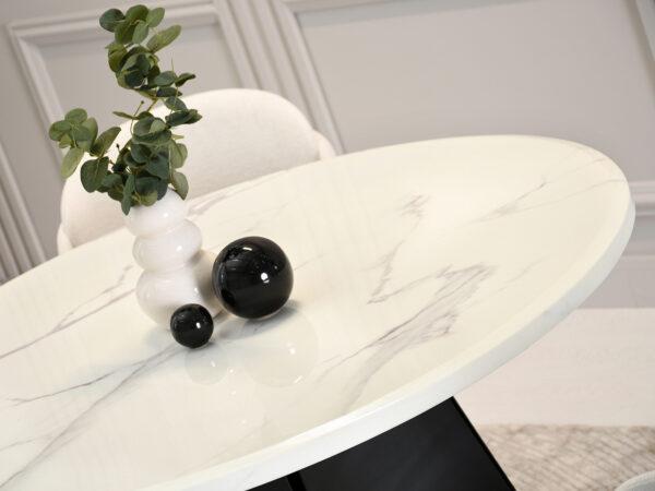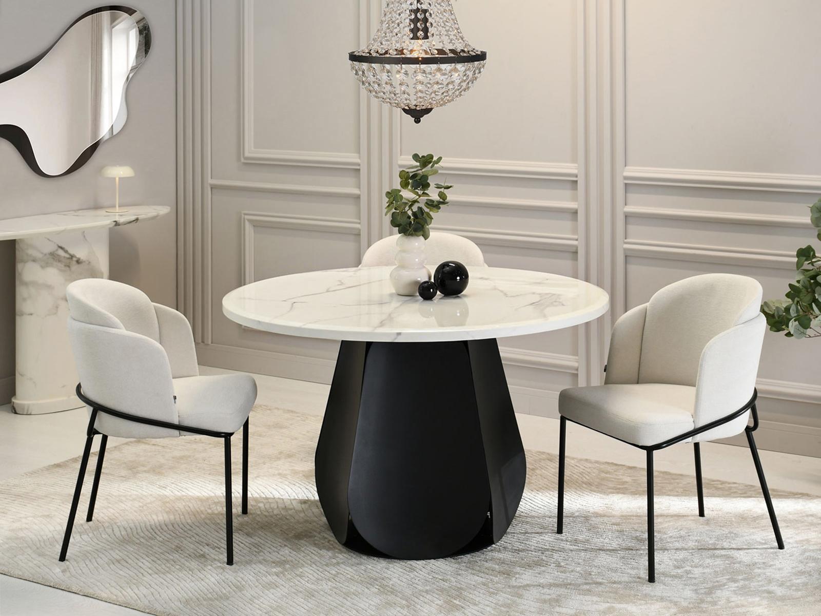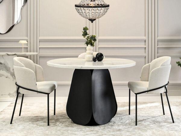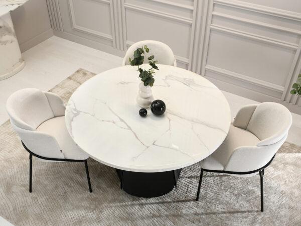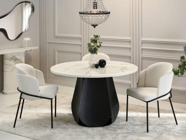 Blagovaonski stol Adore je elegantan komad namještaja koji će izgledati sjajno u blagovaonici, dnevnom boravku ili uredu. Njegova okrugla ploča s efektom mramora i čvrsta dizajnerska baza čine ga ne samo praktičnim već i dekorativnim elementom. U blagovaonici ili dnevnom boravku udobno može smjestiti do šest osoba, stvarajući ugodan prostor za zajedničke obroke.