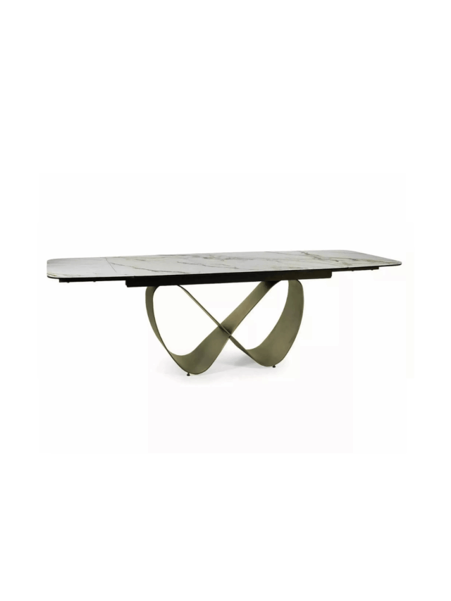 Ovaj stol ima površinu od keramike u bijeloj boji, postavljenu na čvrsto, crno, praškasto premazano metalno postolje. Elegantna kombinacija materijala i boja stvara moderan i sofisticiran izgled stola, dok njegova čvrstoća omogućuje nosivost do otprilike 120 kilograma.