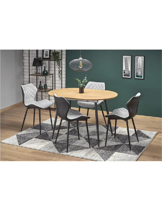Prekrasan blagovaonski stol srednje veličine s jednostavnom funkcijom razvlačenja. Crne metalne noge i ploča prirodne boje drva utoplit će svaki interijer.